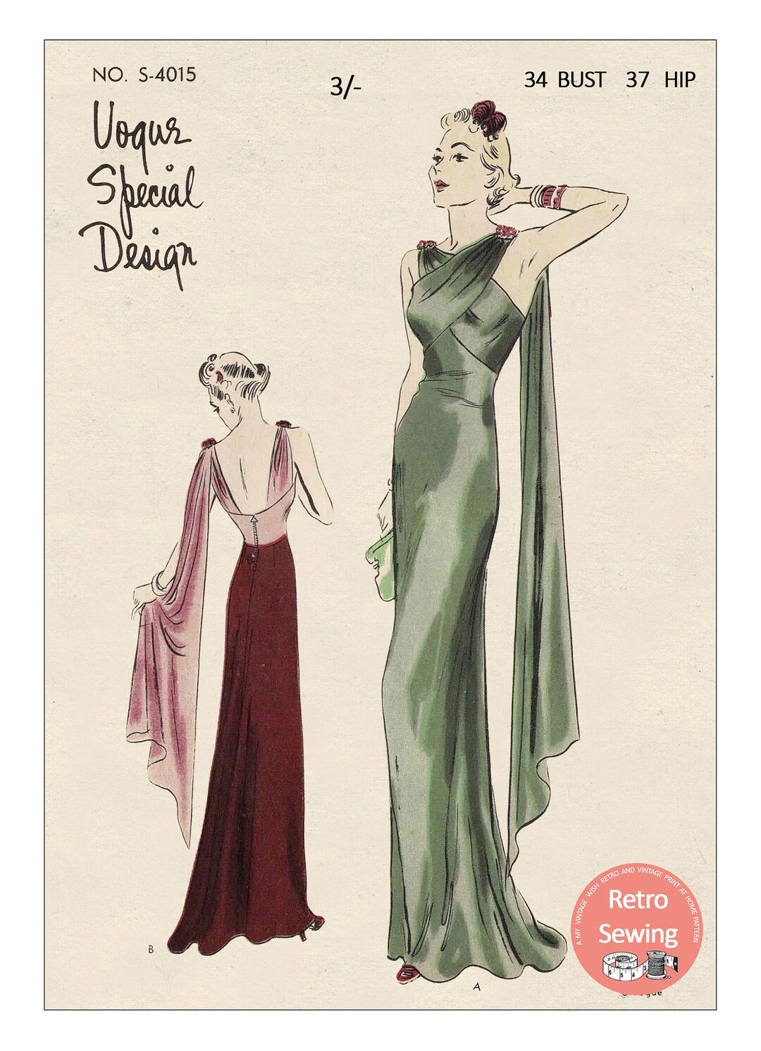 1930 S Stylish Evening Gown Pdf Print At Home Pattern Bust Etsy