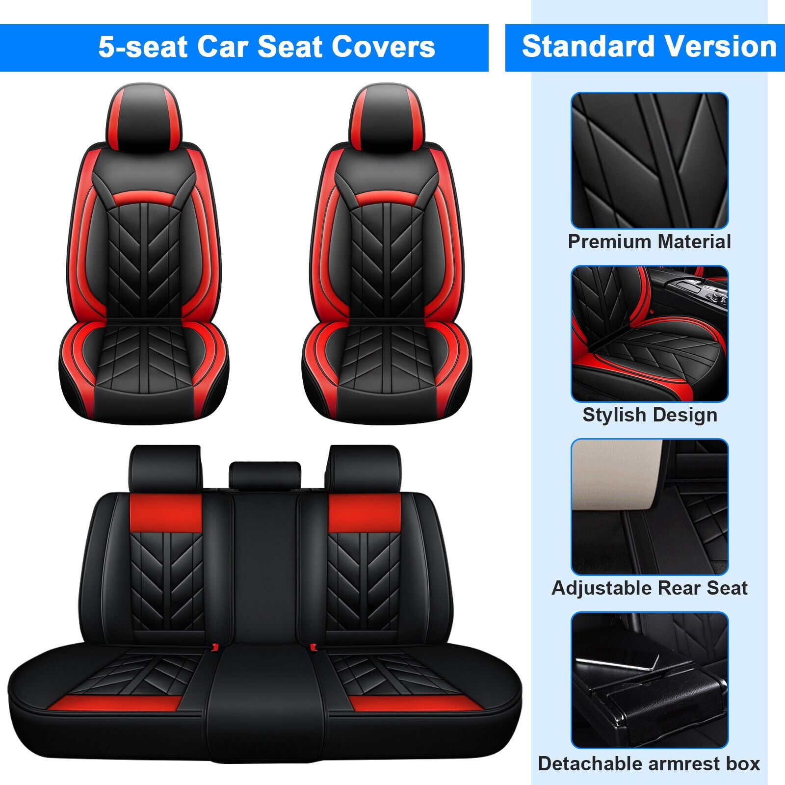 Car Seat Covers For Toyota 5 Seats Full Set Waterproof Pu Leather Auto Cushion Protector Front Rear Seat Cover For Camry Corolla Prius Avalon Matrix Echo Cressida Black Red Walmart Com